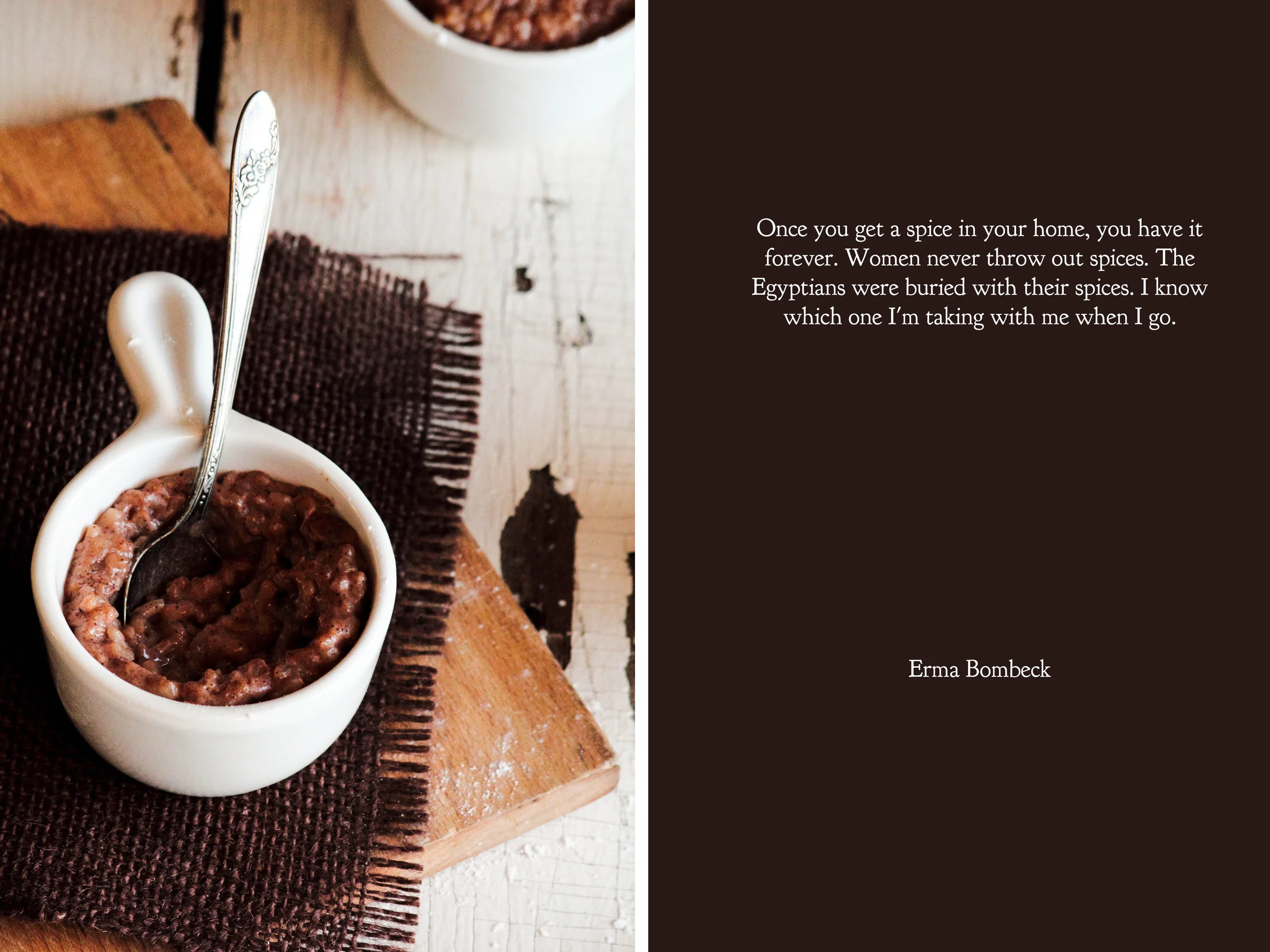 So how does all of this relate to chai spiced pudding? While standing in the spice aisle hunting for a little container labeled chai, it seemed strange to me that I couldn't seem to find it in any of the three stores I had visited throughout the week. I had assumed that chai was a spice all its own, perhaps coming from a tree, like cinnamon. It wasn't until I sat down in front of the computer that the internet softly informed me chai was, in fact, a lovely mixture of several Indian spices.